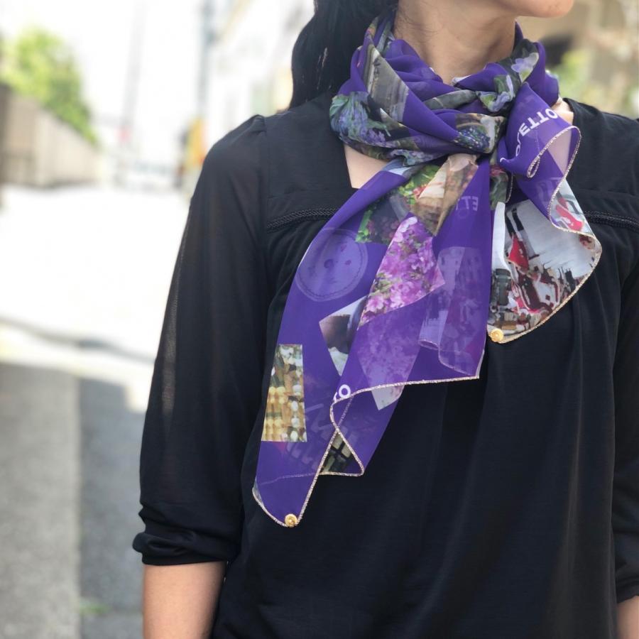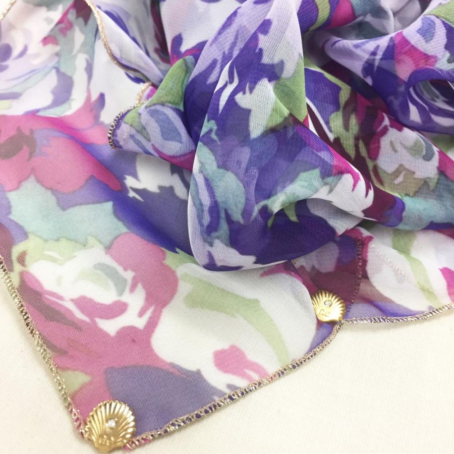 スカーフの四隅には、貝殻モチーフのゴールドエレメント「シェル」付き。